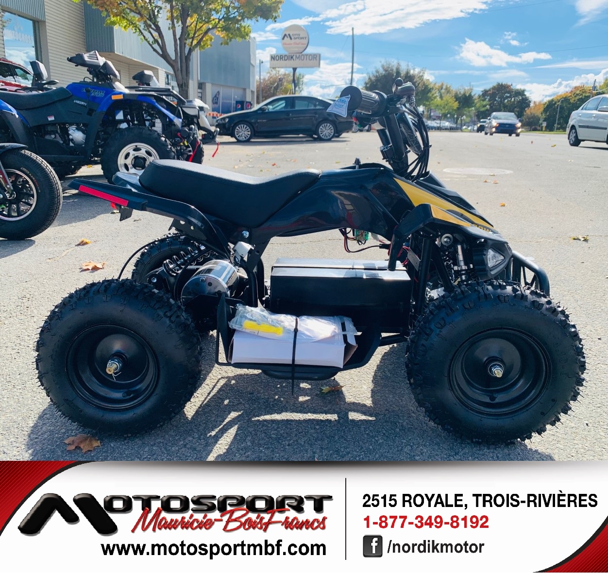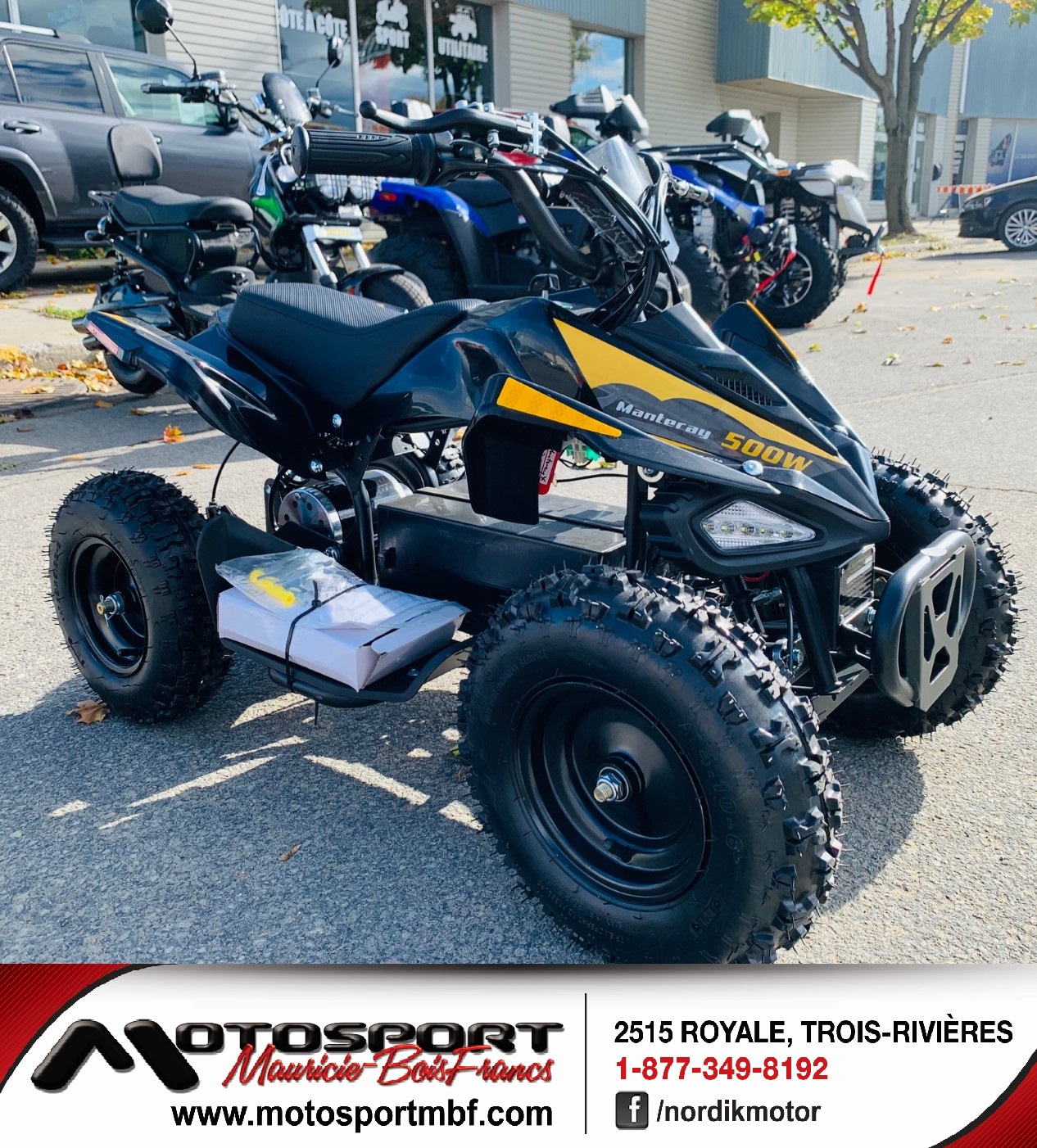 🔥 *VTT ÉLECTRIQUE GIO MANTERAY NEUF À PARTIR DE 899$ OU 57$**/MOIS 🔥 LE PLAISIR À PETIT PRIX – PARFAIT POUR LES JEUNES! Vous cherchez un VTT abordable, sécuritaire et amusant? Le Manteray de Gio Electric est le choix idéal pour initier les jeunes aux sports motorisés! ⚡ 💥 Performances et simplicité : ✔ Moteur 500W avec marche arrière ✔ 3 vitesses ajustables (parfait pour débutant à intermédiaire) ✔ Vitesse maximale de 20 km/h ✔ Batterie 36V12AH ✔ Freins à disque ✔ Transmission à chaîne robuste 🔋 Recharge complète en environ 6 heures 🛞 Pneus : 13x4.1-6 (avant) / 13x5-6 (arrière) 📏 Hauteur de selle : 21 po 💪 Format compact, idéal pour enfants et adolescents 👉 Parfait pour s’amuser en toute sécurité dans la cour, au chalet ou sur terrain privé! ⚡ Quantités limitées – faites vite! ________________________________________ 💰 899$* * plus transport entrant et préparation (100$) et taxes en sus 💳 57$/MOIS** ** prêt ouvert de 24 mois à taux fixe de 11.99%, sujet à approbation de crédit ________________________________________ 📍 Disponible chez Motosport MBF 2515 Royale, Trois-Rivières, Québec, G9A 4L7 🌐 www.motosportmbf.com 📞 819-379-2981 ✉️ [email protected]