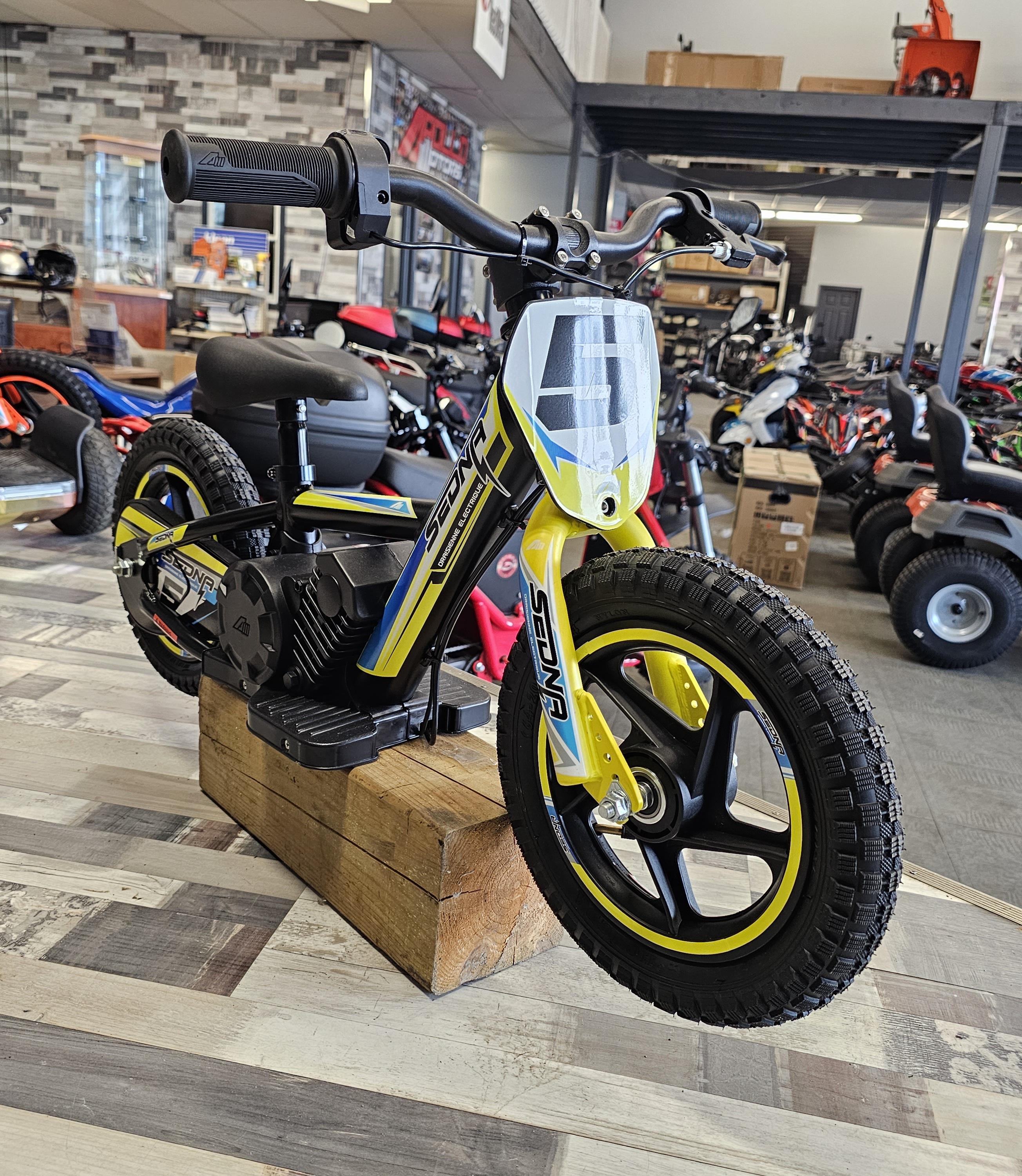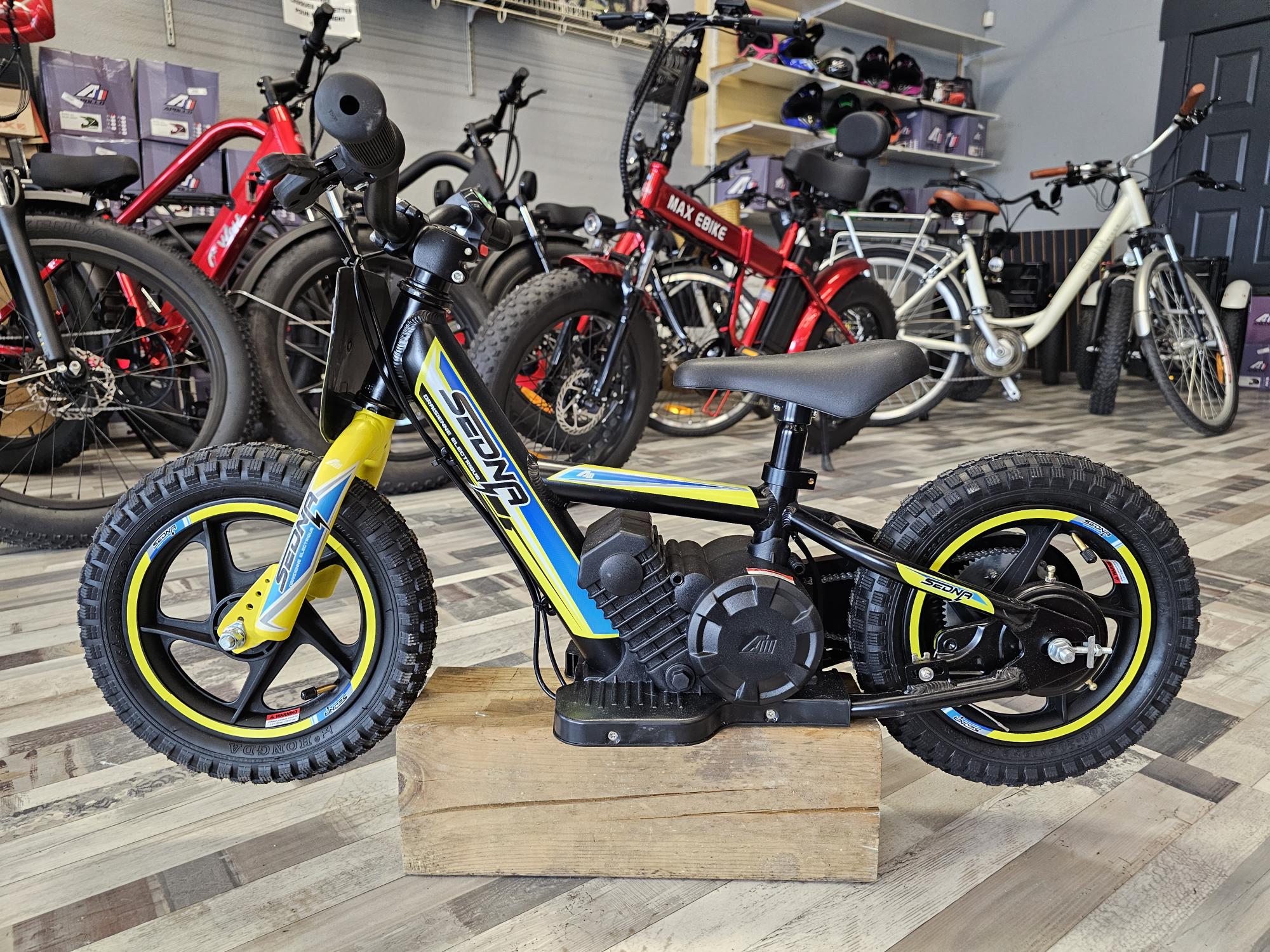Superbe motocross électrique d’apprentissage RFX SEDNA 12 d’Apollo Motors est maintenant disponible à seulement 549$*ou 30$** / mois. Après une expérience de 15 ans en Pit bike, Apollo Motors a développé une draisienne électrique sportive pour enfants : Sedna 12" 100W. Cette draisienne bénéficie des toutes dernières évolutions que le marché peut proposer. Légère, maniable et très complète, cette RXF Sedna est parfaite pour les enfants de 2 à 6 ans : - 2 ans Utilisation sans l’assistance électrique - 3-4 ans Utilisation avec l’assistance électrique vitesse lente (6 km/h) - 5-6 ans Utilisation avec l’assistance électrique vitesse rapide (16 km/h) Cette draisienne électrique est ultra légère, spécialement conçue pour les enfants, pesant seulement 9 kg. Commencez leurs initiations jeunes, en utilisant le vélo comme un vélo à marche conventionnel, avec son système de roue libre spécialement conçu. Ensuite, commencer en utilisant l'assistance électrique en mode vitesse lente (8 km/h) votre enfant pourra poser ses pieds sur les repose-pieds tout en utilisant son équilibre. Tout est extrêmement simple, votre enfant poussera la gâchette de sa manette de gaz pour accélérer, il pourra par la suite passer à une vitesse supérieure en utilisant le réglage vitesse rapide (16 km/h). Ce vélo à marcher est équipé de pneus hybrides adaptés à une utilisation sur route et hors route et un moteur à chaîne offrant des performances fiables Au niveau finition, vous ne serez pas déçu, en effet Apollo a utilisé des pièces de qualités: Cadre et guidon en aluminium ce qui permet à cette draisienne de peser seulement 9 KG batterie incluse, et d'une batterie au Lithium donnant la possibilité d'utiliser le vélo jusqu'à 1h15min en utilisation constante avec seulement une charge de 2h30! Osez comparer avec Arctic Cat, BRP / Can-Am, CF Moto, John Deere, Honda, Husqvarna, Kawasaki, Polaris, Suzuki, Yamaha et économiser gros! Venez nous rencontrer et il nous fera plaisir de vous conseiller! MOTOSPORT MAURICIE BOIS-FRANCS 2515 Royale Au cœur de Trois-Rivières depuis 2005 Téléphone 819-379-2981 Site web www.motosportmbf.com
