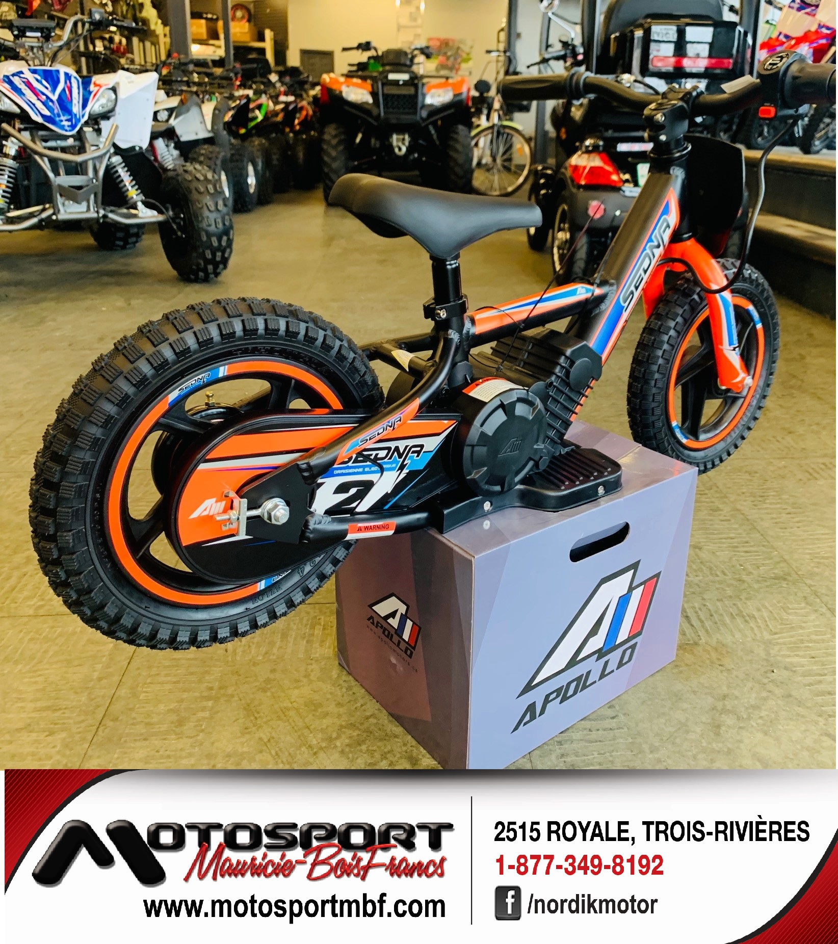 ⚡ Superbe draisienne électrique APOLLO RFX SEDNA 12 ✨ Seulement 549 $ ou 30 $* / mois ✨ La nouvelle RFX Sedna 12" 100W d’Apollo Motors, forte de 15 ans d’expertise en Pit Bike, est une draisienne électrique sportive spécialement conçue pour les enfants de 2 à 6 ans. Légère, maniable et évolutive, elle est parfaite pour initier les plus jeunes au plaisir du deux-roues. 🏁🔋 🔑 Évolution adaptée à l’âge 2 ans ➜ Utilisation sans assistance électrique (vélo d’équilibre classique) 3–4 ans ➜ Assistance électrique – vitesse lente (6 km/h) 5–6 ans ➜ Assistance électrique – vitesse rapide (16 km/h) ⚙️ Caractéristiques remarquables Poids plume : 9 kg (batterie incluse) Cadre et guidon en aluminium : robustesse et légèreté Moteur à chaîne 100 W fiable et silencieux Batterie lithium : jusqu’à 1 h 15 min d’autonomie – recharge complète en seulement 2 h 30 Pneus hybrides : parfaits pour la route ou les sentiers Votre enfant commencera en mode draisienne classique (roue libre), puis pourra progressivement utiliser la gâchette d’accélérateur pour passer au mode électrique. Simplicité et plaisir garantis! 🎉 💰 Osez comparer avec Arctic Cat, BRP/Can-Am, CF Moto, John Deere, Honda, Husqvarna, Kawasaki, Polaris, Suzuki, Yamaha et économisez gros! 👉 Venez nous rencontrer, il nous fera plaisir de vous conseiller! 🏍️ MOTOSPORT MAURICIE BOIS-FRANCS 📍 2515 Royale, Trois-Rivières – Au cœur de la Mauricie depuis 2005 📞 819-379-2981 🌐 www.motosportmbf.com